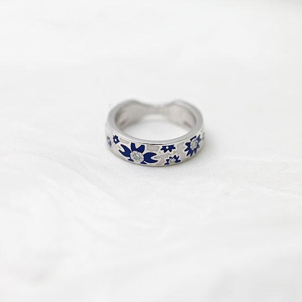 指輪 桜 リング PT100 プラチナ10% レディースリング 5-14号 細め 白/青 ダイヤモンド 0.08ct