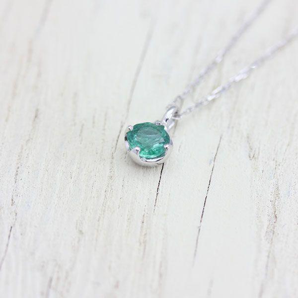 誕生石 プラチナ100 (pt10%) ネックレス 1粒 エメラルド 0.2ct K10WGチェーン 5月 ペンダント バースデー プレゼント