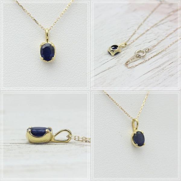 ネックレス K10YG イエローゴールド 1粒 誕生石 長丸 ブルーサファイア 9月 ペンダント K10 バースデー プレゼント