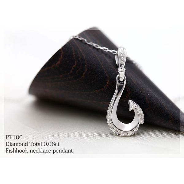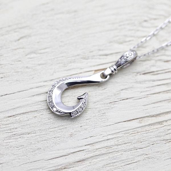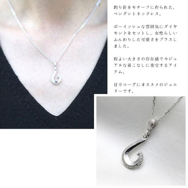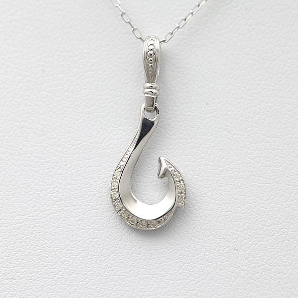 ネックレス レディース 釣り針 フィッシュフック PT100 プラチナ10%シルバー90% ダイヤモンド 0.06ct チェーン K10WG リバーシブル ペンダント