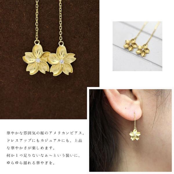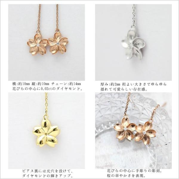 ピアス レディース 桜 K18 WG PG YG さくら ダイヤモンド 0.02ct アメリカン 揺れるピアス
