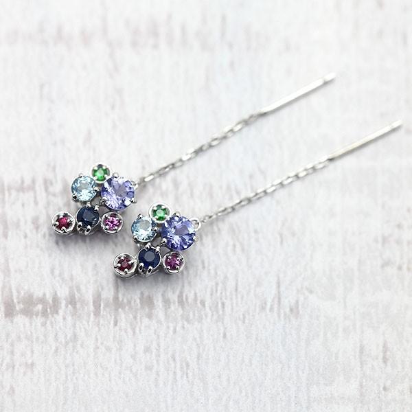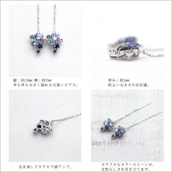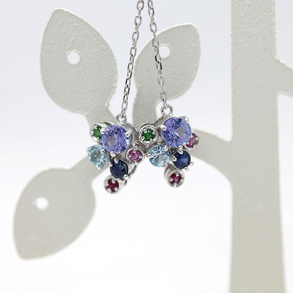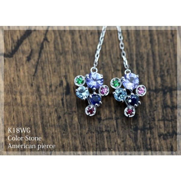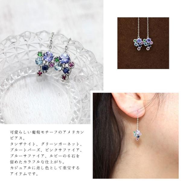 ピアス アメリカン レディース K18WG ホワイトゴールド 葡萄 ぶどう モチーフ カラーストーン ルビー サファイア タンザナイト 揺れる