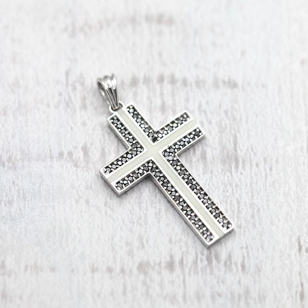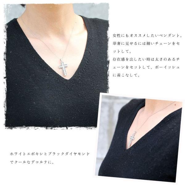 ネックレス トップのみ レディース PT100 プラチナ10% シルバー90% ブラックダイヤ クロス 十字架 ペンダント トップ エポキシ