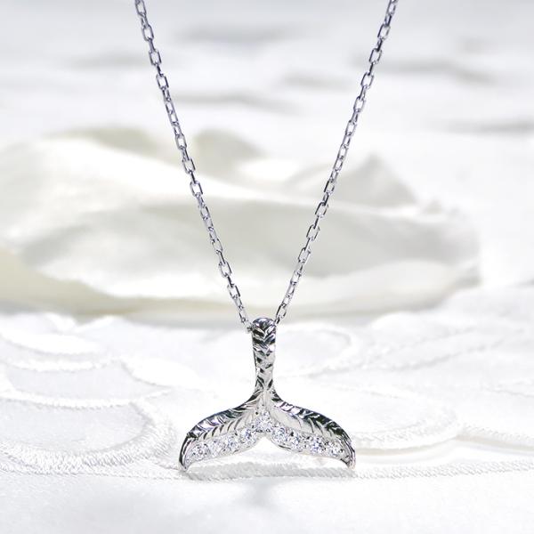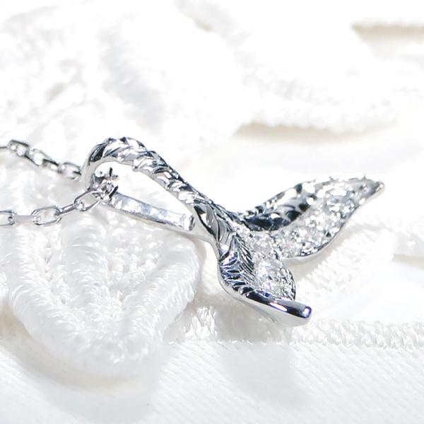 ハワイアンジュエリー ネックレス PT900 プラチナ 0.09ct ダイヤモンド クジラ しっぽ ホエールテール ハワイアン ペンダント