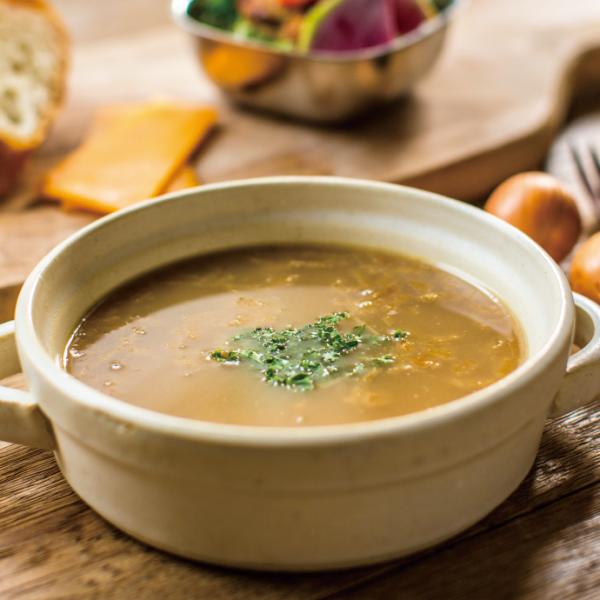 甘み、旨み、スパイシーな爽快感を味わえるオニオンスープ。 淡路島産の玉ねぎをあめ色になるまで4時間じっくり炒めたものを使用。 1食に小玉ねぎ約半分も入っており、甘味・ボリューム・口に入れた時の存在感をさらに感じていただけます。 インド産の黒コショウでスパイスをきかせスパイシーで爽快な後味に仕上げています。【仕様】無添加【成分】タンパク質:2.7g、脂質:1.3g、炭水化物:5.0g、食塩相当量:1.3g【種類】フリーズドライ【賞味期限】18ヶ月【カロリー(kcal)】43【原材料】チキンエキス、小麦発酵調味液、ローストオニオンペースト、酵母エキス、でん粉、黒砂糖、ブイヨン、ポークオイル、有機発酵野菜粉末、食塩、にんにパウダー、黒こしょう、具(ローストオニオン(玉ねぎ(淡路島産)))/増粘剤(グァーガム)、酸化防止剤(V.E)