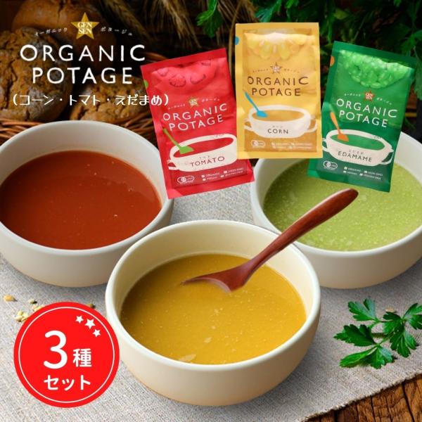 コスモス食品 オーガニック ポタージュ スープ コーン トマト えだまめ 無添加 グルテンフリー フリーズドライ アソートセット