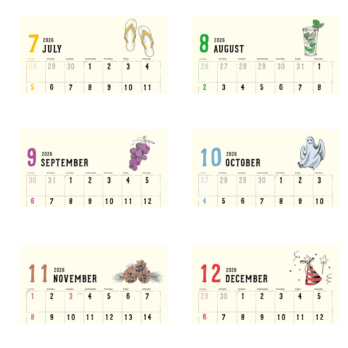 ・文字月表にワンポイントのスケッチ画で遊び心をプラス