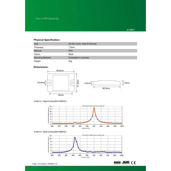 金属対応タグ Impinj Monza 4QT JI-4601 RFID ICタグ UHF帯 周波数帯902MHz〜928MHz コンクリートエンベデッド 数量1個