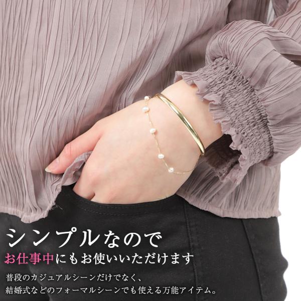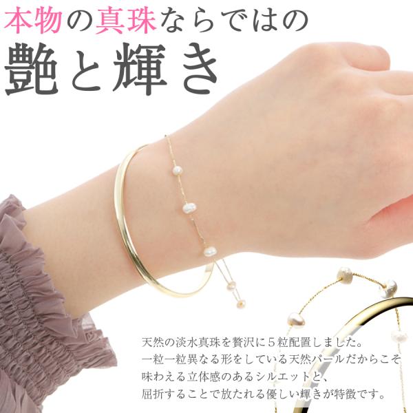 ブレスレット レディース 2連 バングル ゴールド パール チェーン 重ね着け風ブレスレット 天然 淡水真珠