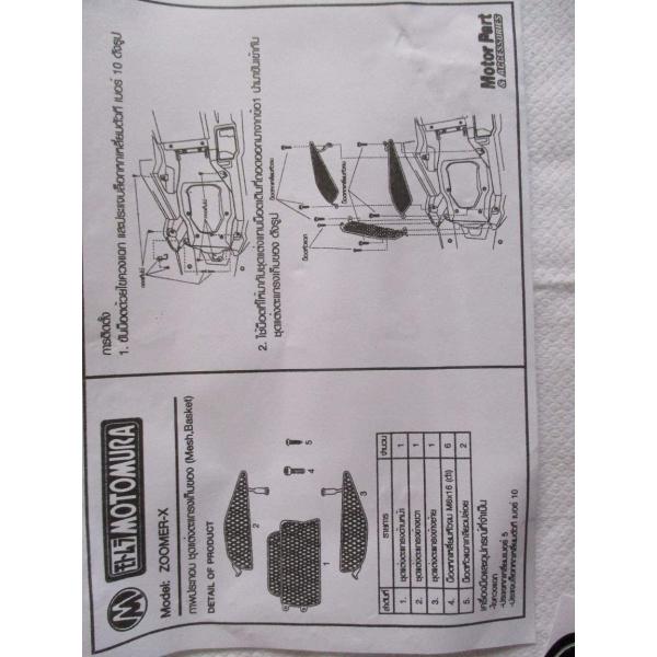 ズーマーX 旧型用 JF52用になります。ちょっとしたお出かけにとても便利なのがシート下のメッシュバスケット。荷物スペースのないズーマーXが便利に使えます。取り説はタイ語ですがイラスト入りなので取り付け方法はわかるとおもいます。スチール製になります。ねじ錆びあります。ロットによりシールデザインが画像のものと異なる場合あります。。中身状態確認のため開封してチェック後発送いたします。