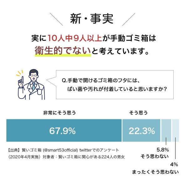 (8) 自動開閉なので、汚れや埃が付着しているフタに直接手を触れる必要がなく衛生的