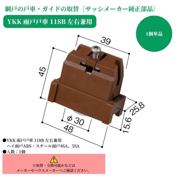 YKK 雨戸戸車118B 左右兼用 ハイ雨戸ARS・スチール雨戸4SA 5SA 1個 交換 取替 金物 補修 部品 サッシ パーツ がたつき DIY 取付