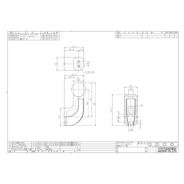付属品:ねじ付(壁付け用+なべタッピンねじ4×20 3本、手すり取付け用ねじ+なべタッピン4×20 2本)