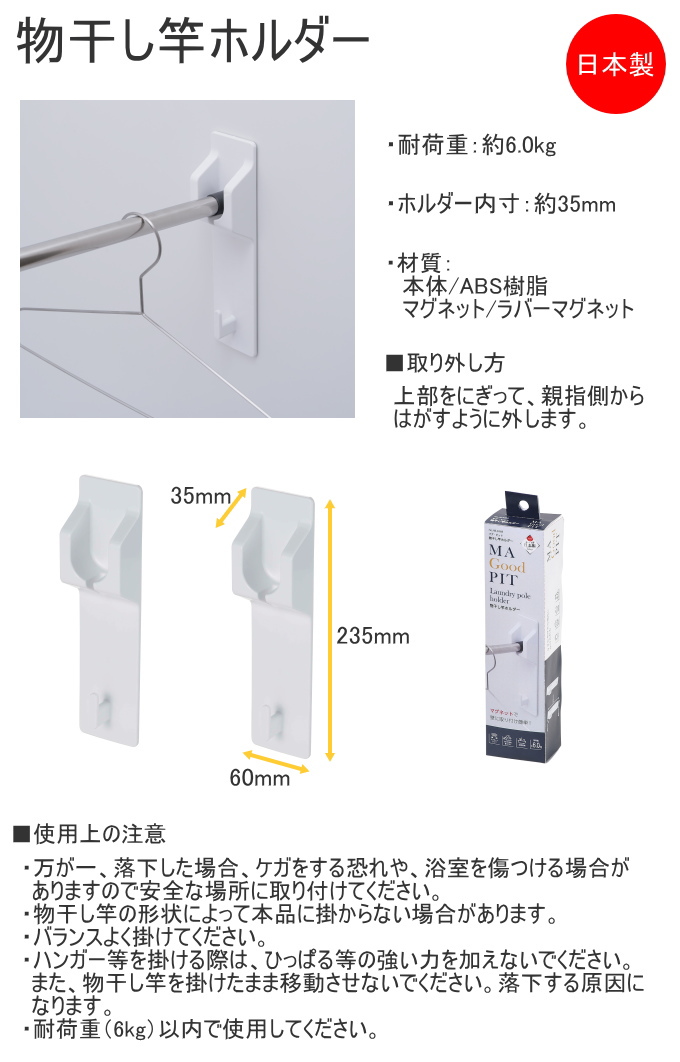 マグ・ピット 物干し竿ホルダー HB-6988 日本製 バス用品 浴室用品 マグネット収納 磁石 お風呂 バスルーム 浴室 浴室収納 整理 便利グッズ