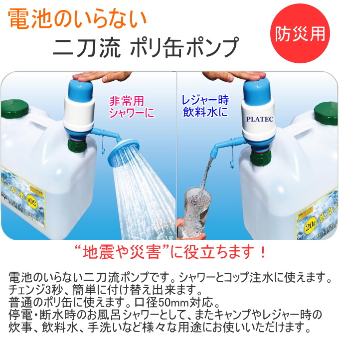 電池のいらない 二刀流ポリ缶ポンプ PS-3 手動 ポリタンク 口径50mm 災害時 アウトドア 飲料水 簡易シャワー 防災用品 非常用 プラテック