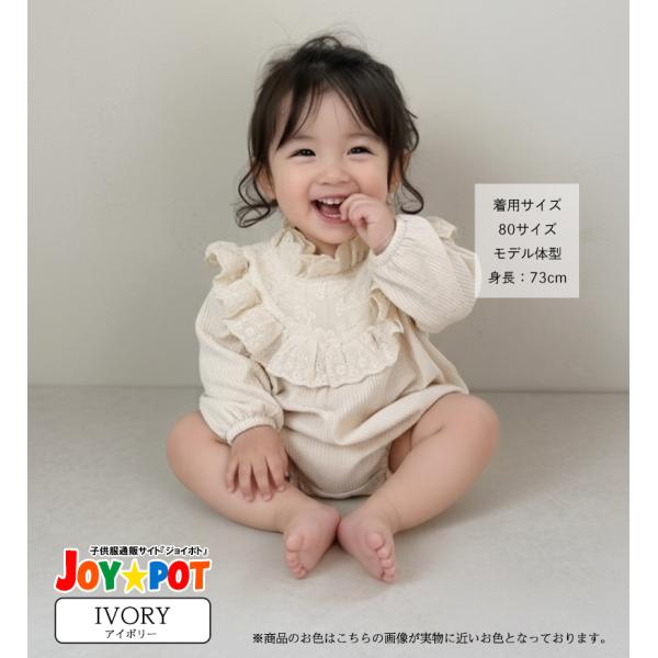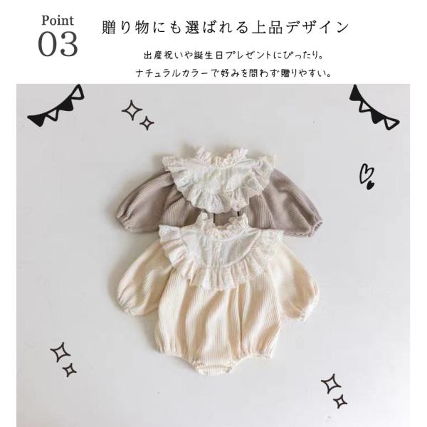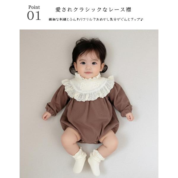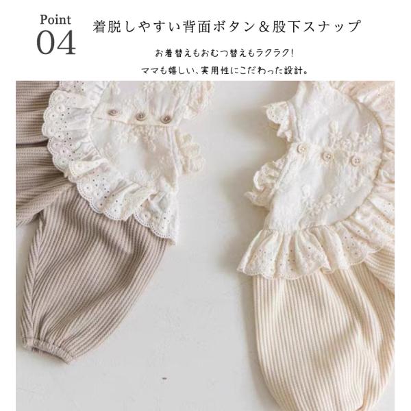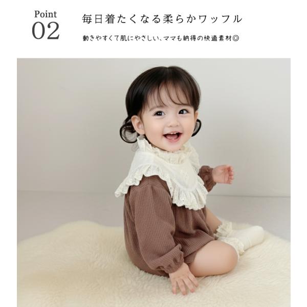 ベビー服 ロンパース 韓国風 フリル襟 ワッフル 長袖 女の子 70