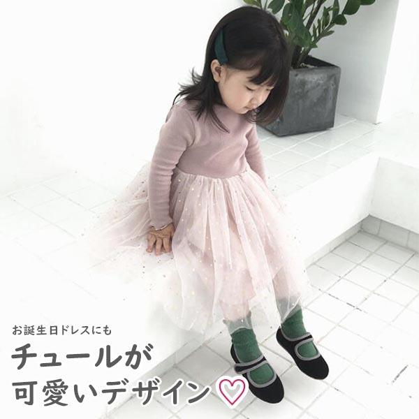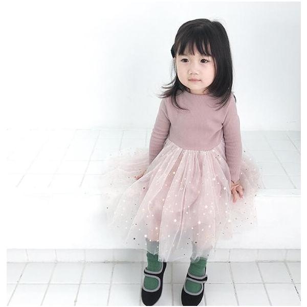 ベビー服 女の子 ワンピース 長袖 ドレス 70 80 90 100 110 子供服 チュール 星 1歳 2歳 誕生日 女のコ服