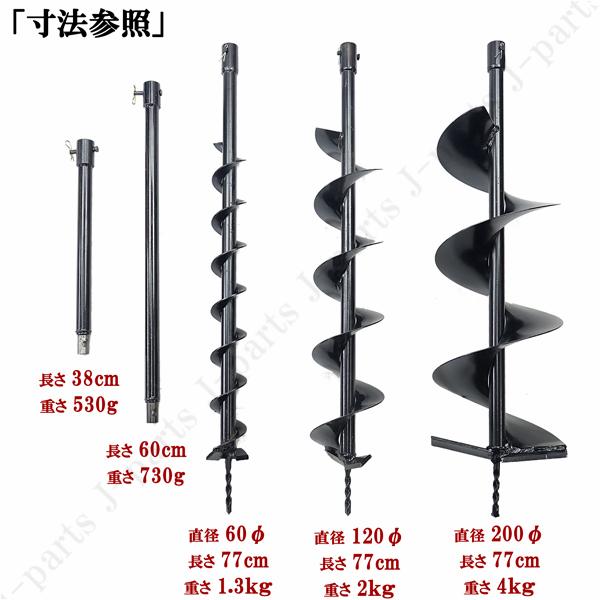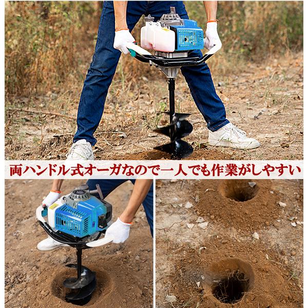 動画付き エンジン 穴掘り機 2サイクル 63cc 2.4kw アースオーガー 延長棒 3種類ドリル φ60 φ120 φ200 杭打ち 穴開 種まき くい打ち
