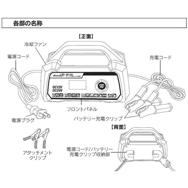 大自工業 セレクト式自動パルス充電器 MP-230 バッテリー充電器 メルテックプラス DC12V/24V対応 セルスタート補助機能付き