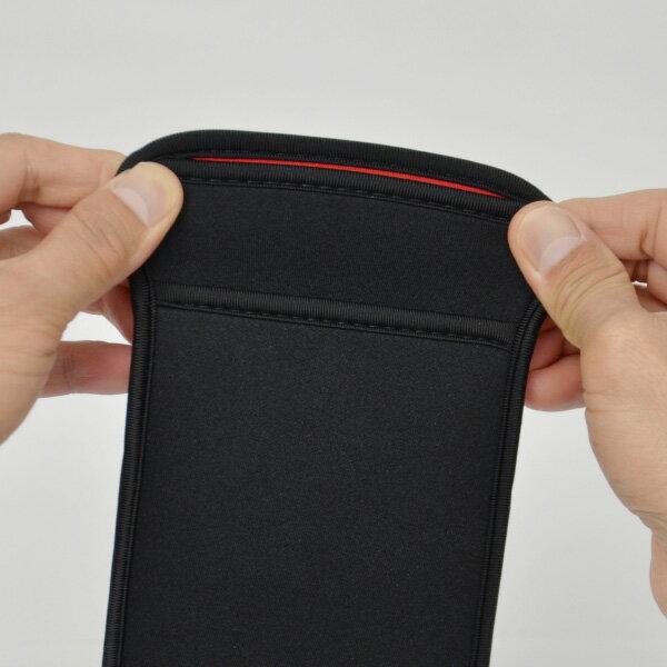 ・ケースは柔らかく伸縮性のあるウェットスーツ(高級ネオプレン)素材で出来ているので、iPhoneを優しくしっかりと包んで守ってくれます。