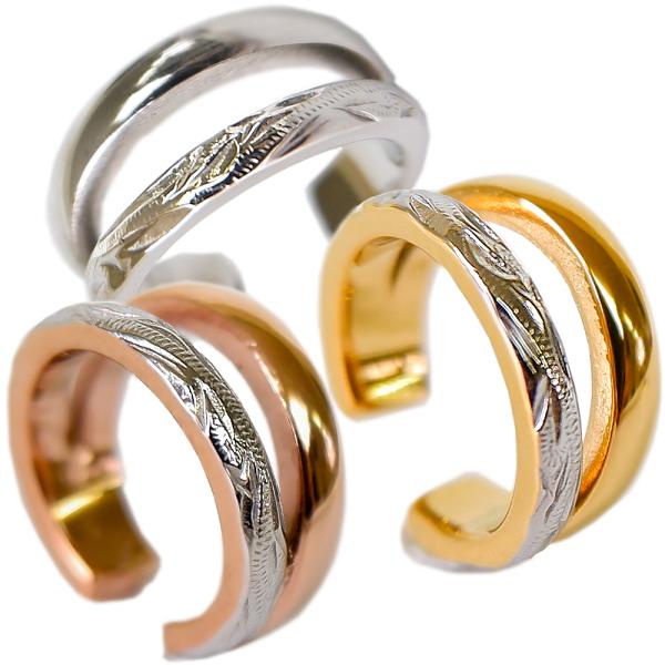 ハワイアンジュエリー イヤーカフ 片耳用 金属アレルギー対応 メンズ レディース ステンレス シルバー ゴールド ピンクゴールド スクロール 波 ユニセックス