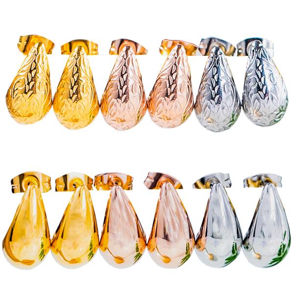 ハワイアンジュエリー ピアス 片耳 両耳 スクロール サージカルステンレス 金属アレルギー対応 雫 ぷっくり シルバー ゴールド ピンクゴールド レディース