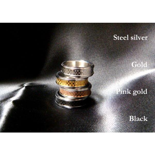 リング ブラック ピンク ゴールド シルバー ステンレス チェック メンズ レディース 指輪 ピンク アクセサリー 刻印 年度末 sale