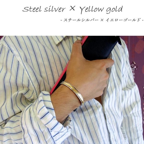 送料無料 刻印可能 ステンレスバングル イエローゴールド