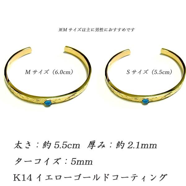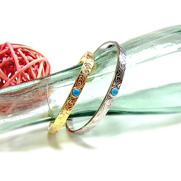 ハワイアンジュエリー バングル イエローゴールド シルバー ターコイズ 石 サージカルスレンレス メンズ レディース K14コーティング プレゼント ギフト sale