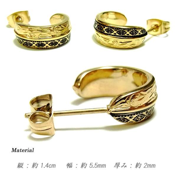 ハワイアンジュエリー ピアス イエローゴールド オルテガ柄 メンズ レディース ホヌ スクロール 記念日 誕生日 プレゼント ギフト sale