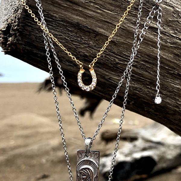 ハワイアンジュエリー ネックレス ホースシュー 馬蹄 リバーシブル 2WAY 石 ジルコニア 花 写真フレーム フラワー 金属アレルギー対応 ステンレス インスタ sale