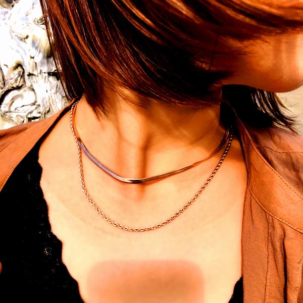 ハワイアンジュエリー スクロール スネークネックレス チェーン ステンレス アジャスター シルバー ピンクゴールド イエローゴールド K14コーティング