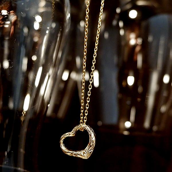 ハワイアンジュエリー ネックレス オープン ハート スクロール 波 金属アレルギー対応 サージカル ステンレス ギフト インスタ sale