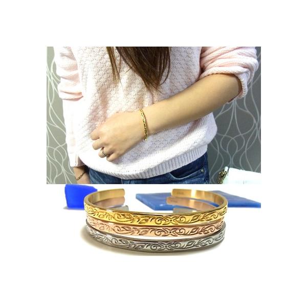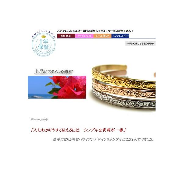 ペアハワイアンジュエリー バングル スチールシルバー ピンクゴールド イエローゴールド プルメリア スクロール ホヌ sale