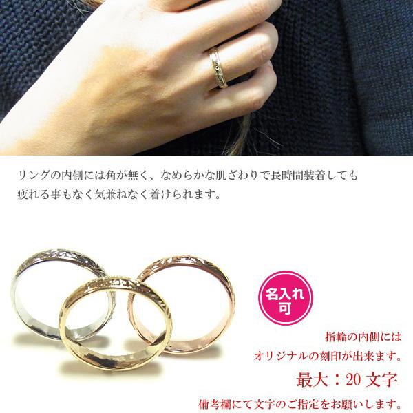 太さ3mm甲丸スタンダードデザイン!リングの内側には角が無く、なめらかな肌ざわりで長時間装着しても疲れる事もなく気兼ねなく着けられます。その時々の想いそれぞれのあたたかい気持ちを宿っているからこそ