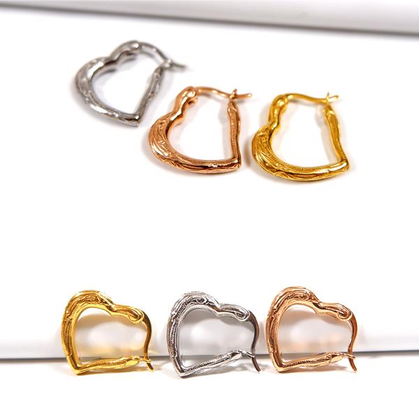 ハワイアンジュエリー ハート ピアス 片耳 両耳 ゴールド ピンクゴールド レディース フープ スクロール sale