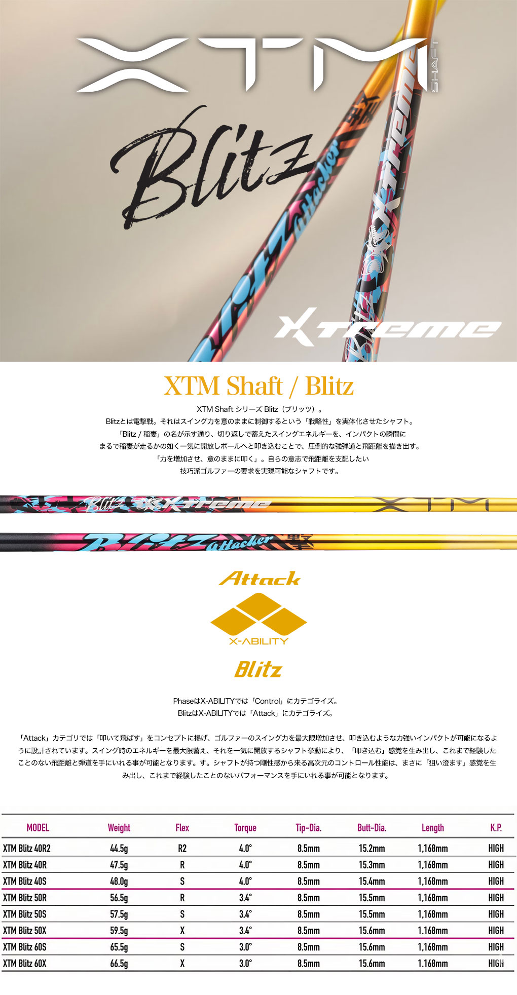 ●モデル:XTM Blitz(ドライバー&フェアウェイ兼用=0.335tip)