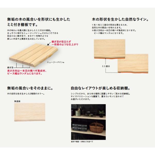 ウッドワン ミミ付き棚板 ニュージーパイン 無塗装 厚み24mm 長さ900mm 奥行き450mm MTR0900N-E1M-A WOODONE