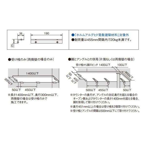 ※二方壁・三方壁納まりの設置の際に、アングルと併用にて設置ください。