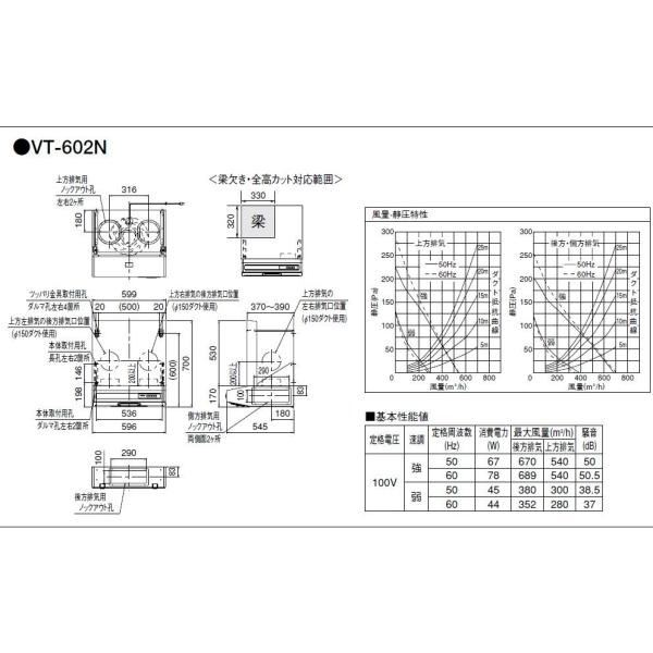 ◇【平日正午12時まで当日出荷】≪タカラスタンダード VT-602N≫ 平型レンジフード ターボファン 排気タイプ 幅60cm VT-60N, VT-601の後継品【優良配送】 爆買