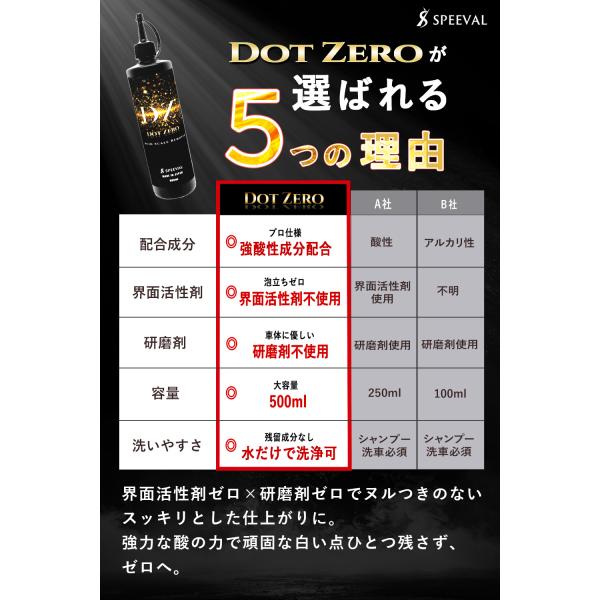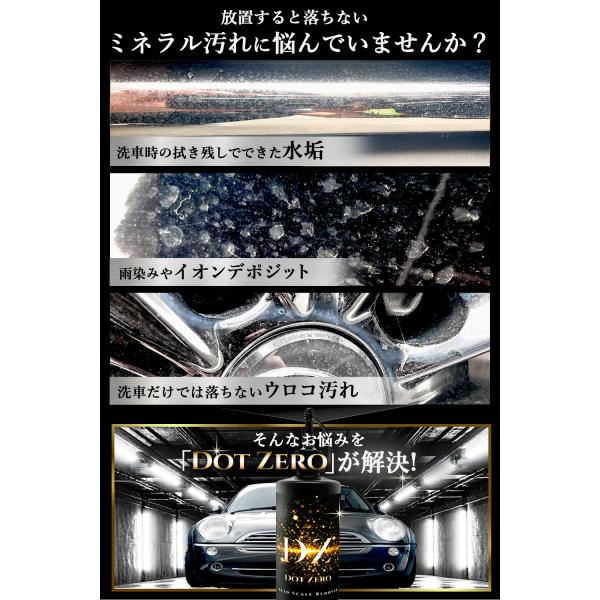 ?【白い点ひとつ残さず、ゼロへ。】アルカリ性や酸性カーシャンプーの洗車でも落としきれなかった、頑固なミネラル汚れをもう諦めない! 強力な酸の力で、イオンデポジットやウロコ、スケールを徹底分解。