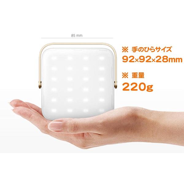 サイズ:約92×92×28mm 重量:約220g 明るさ:約260〜1300Lm LED色温度:昼光色、昼白色、電球色