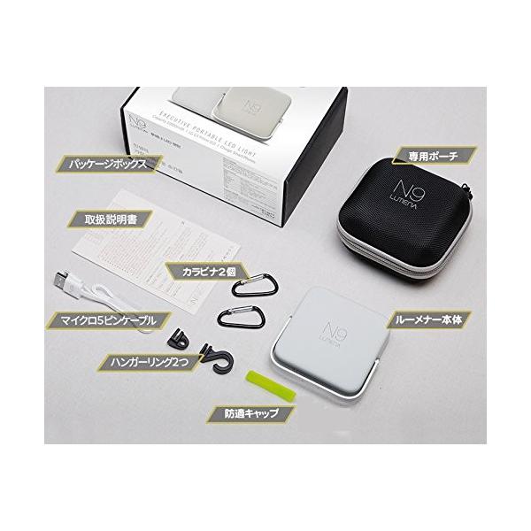 付属品:本体、専用ポーチ、マイクロUSBケーブル、ハンガーリング2個、カラビナ2個、防滴カバー(充電用アダプターは別売)