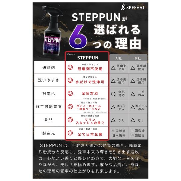 SPEEVAL STEPPUN ステップン 【化学反応で鉄粉を瞬時にOFF】 鉄粉除去剤 ブレーキダストクリーナー 低臭 ボディ ホイール 中性 大容量 500ml