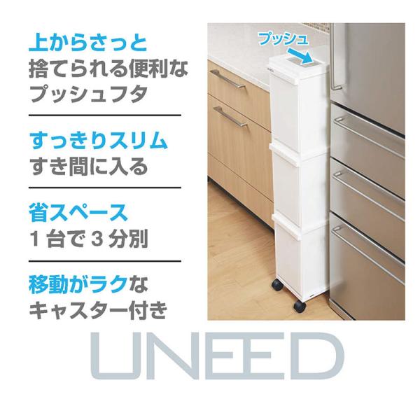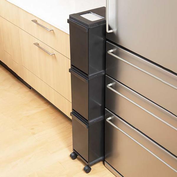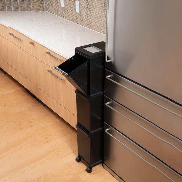 新輝合成 ユニード多段スリムペール3段 ブラック スリム トンボ 分別ごみ箱 ゴミ箱 キッチン すき間 省スペース キャスター付き 縦型分別 送料無料