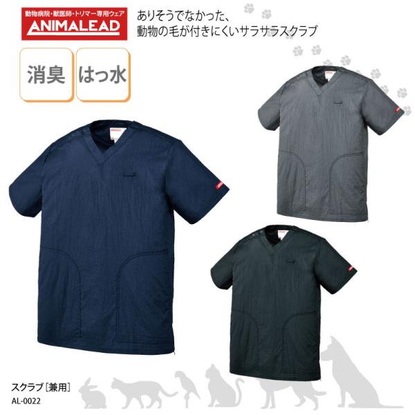 スクラブ 男女兼用 白衣 獣医療 獣医 医師 ナースウェア ドクター トリマー 消臭 はっ水 軽量 チトセ ANIMALEAD アニマリード AL-0022 刺繍 プリント 爆買