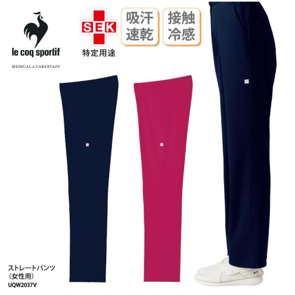 パンツ 女性用 医療 ユニフォーム 白衣 ナース ドクター メディカル 介護 ネイビー 接触冷感 ストレッチ 吸汗速乾 制菌 帯電防止 防透 ルコック UQW2037V 裾上げ