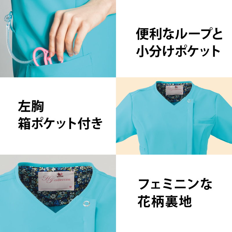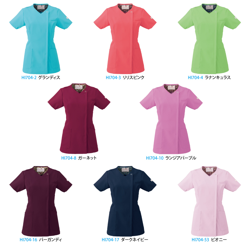 Wacoal ジップスクラブ 半袖 人気 白衣 女性 看護 ナースウェア 介護 軽量 医師 薬剤師 クリニック ワコール FOLK HI704 刺繍 プリント 爆買