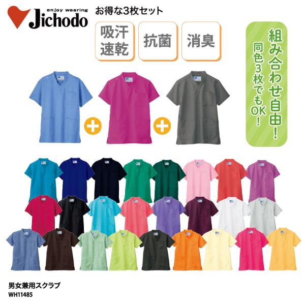 スクラブ お得な3枚セット 医療 白衣 男女兼用 看護師 ナース 男女兼用 介護 動物病院 吸汗速乾 通気性 ホワイセル WH11485 刺繍 プリント 爆買