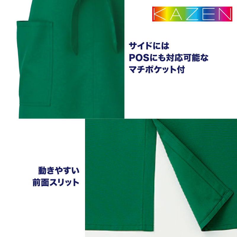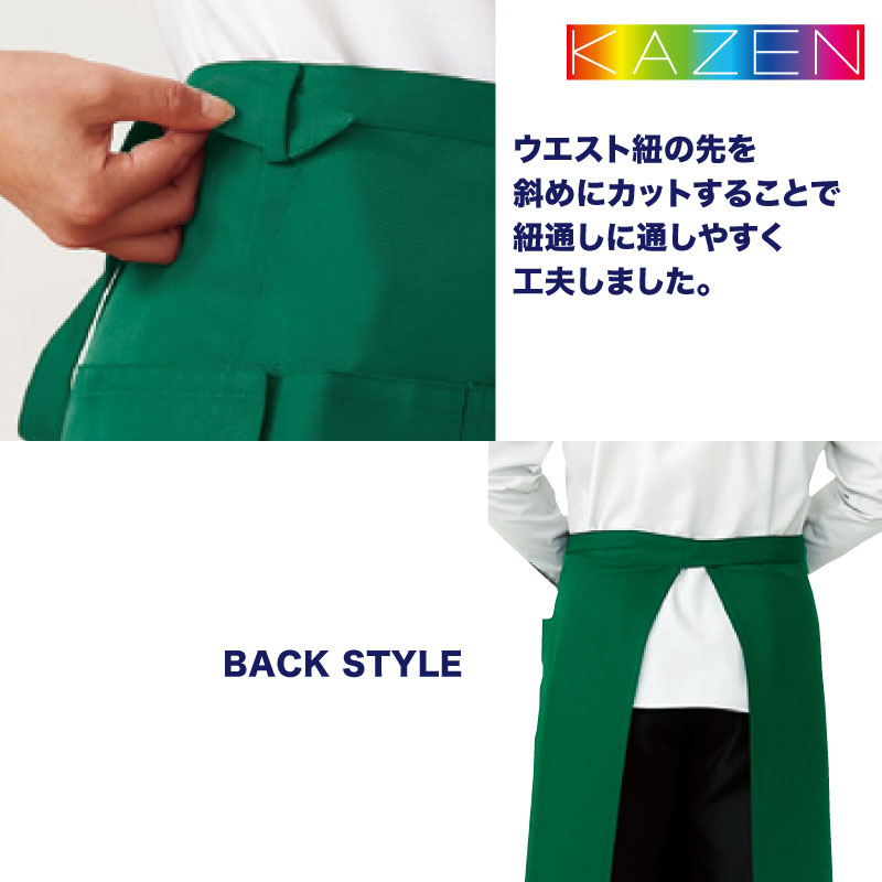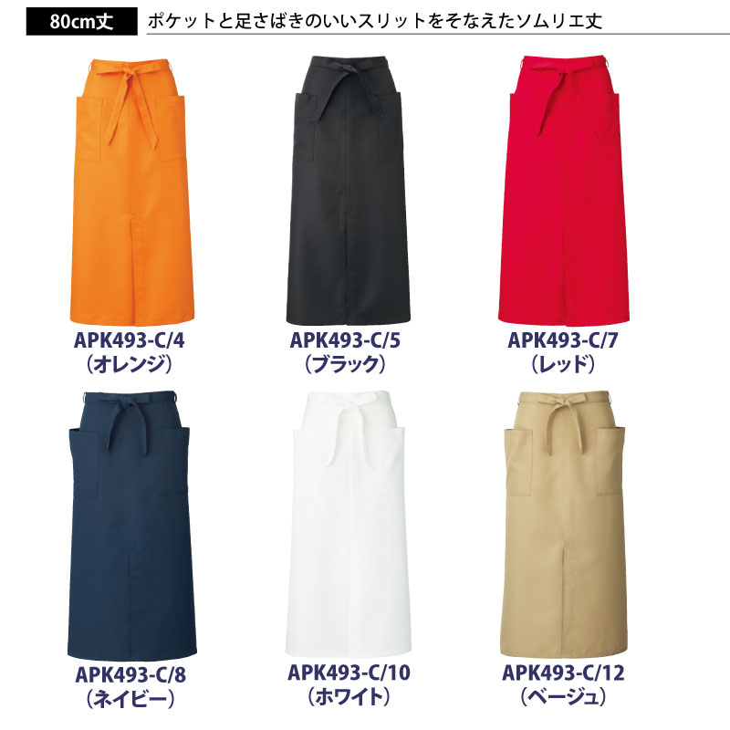 ソムリエ エプロン 前掛け ロング丈 退色防止 色落ちにくい 調理 厨房 飲食 レストラン カフェ 男女兼用 スリット カゼン KAZEN APK493 刺繍 プリント 爆買